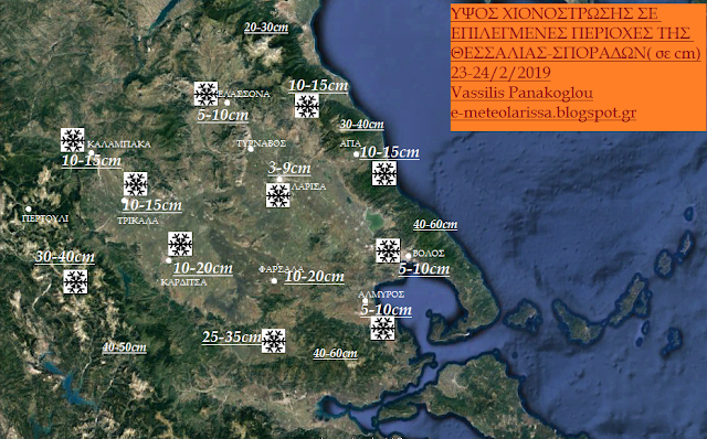 Με τα τελευταία βράδυνα στοιχεία τα ύψη χιονιού που αναμένονται στο Θεσσαλικό χώρο έχουν ως εξής. Μικρο διαφοροποιήσεις έχουν γίνει σε κάποιες περιοχές καθώς και διορθώσεις ασφάλειας για κατ΄ εξακολούθηση αντιγραφές κείμενων του Blog.