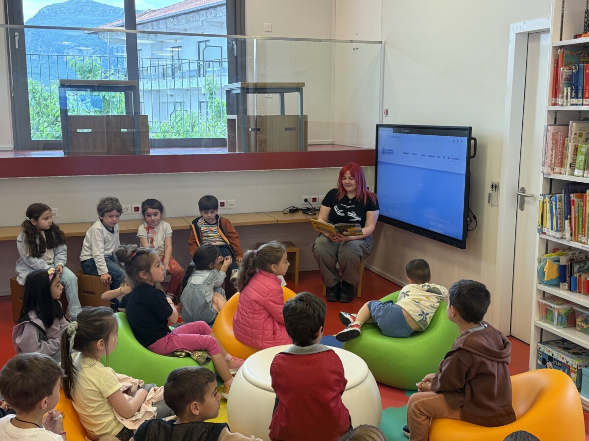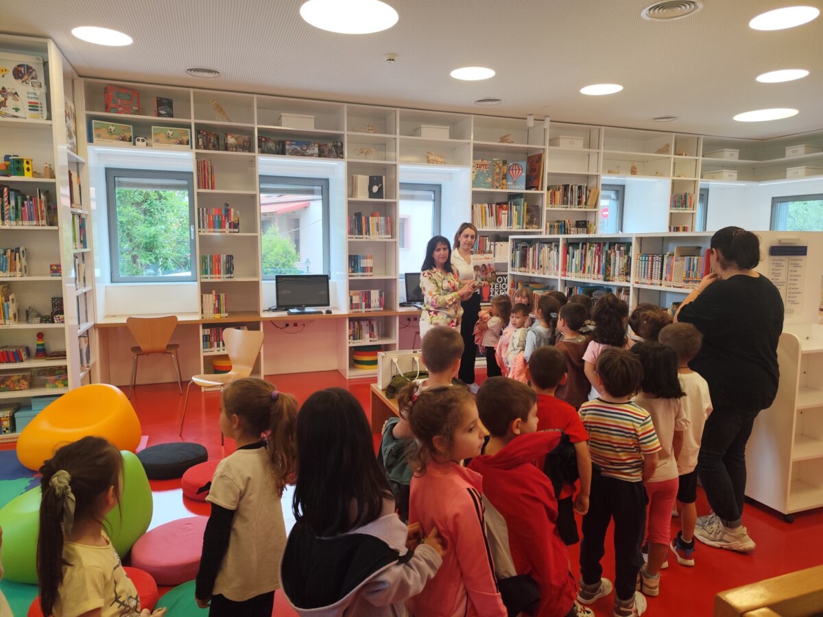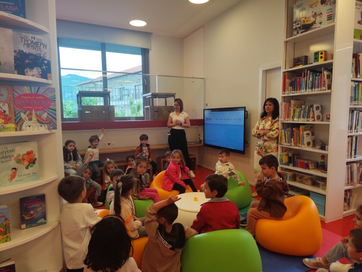 Η επίσκεψη είχε ως στόχο την εξοικείωση των μικρών μαθητών με τον κόσμο του βιβλίου και την καλλιέργεια της φιλαναγνωσίας.
