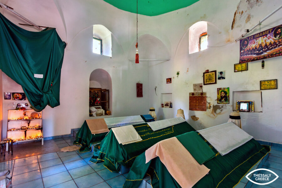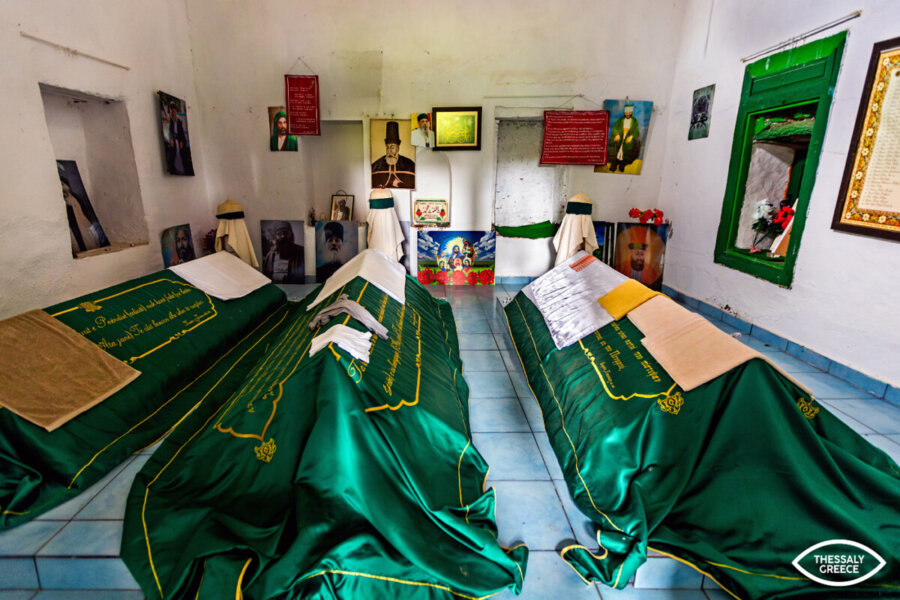 Στο ταφικό συγκρότημα, σώζονται περίπου 33 τάφοι, ενώ ξεχωρίζουν οι δύο πετρόχτιστοι τουρμπέδες, οι οποίοι συνδέονται μεταξύ τους με νεότερη, τσιμεντένια κατασκευή. Τα δύο μαυσωλεία, και ειδικά το παλιότερο (δυτικό), έχουν σημαντική αρχιτεκτονική αξία. Στον κάθε τουρμπέ, «φιλοξενούνται» τρεις τάφοι και άλλοι δύο στην ενδιάμεση κατασκευή. Κάθε τάφος σκεπάζεται από πράσινο κάλυμμα (το πράσινο είναι το ιερό χρώμα του Ισλάμ) με αποσπάσματα από το Κοράνι στα αλβανικά και τα ελληνικά. Ιδιαίτερη εντύπωση προκαλεί το γεγονός ότι στον εξωτερικό τοίχο του παλιότερου τουρμπέ υπάρχει χριστιανικό εκκλησάκι και εικόνες αγίων.