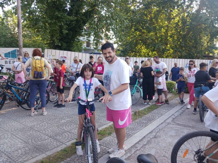 Μετά το τέλος της ποδηλατάδας, ένας τυχερός κέρδισε ένα ποδήλατο .