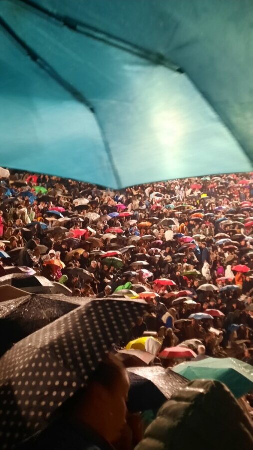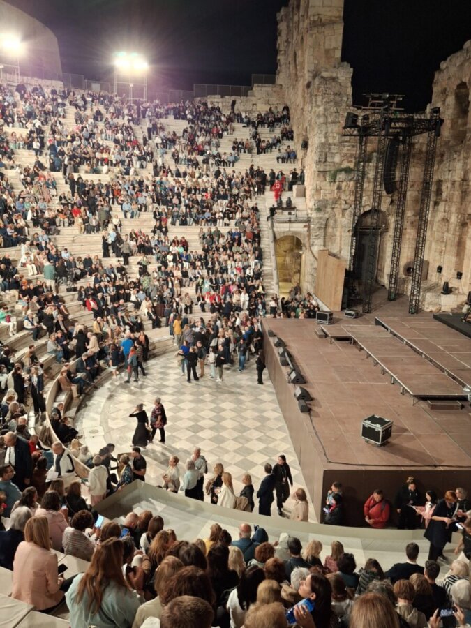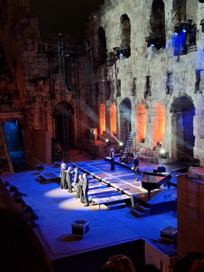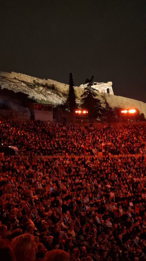 Αν και ο καιρός δεν ήταν σύμμαχός τους, καθώς κατά την διάρκεια της παράστασης έβρεξε, ακόμη και με ομπρέλες ,απόλαυσαν την παράσταση που αποτελούσε έναν βαθύ και συγκινητικό φόρο τιμής στον αείμνηστο συνθέτη, στο πλαίσιο του «Αφιερωματικού Έτους Μίκη Θεοδωράκη», με αφορμή τα 100 χρόνια από τη γέννησή του.