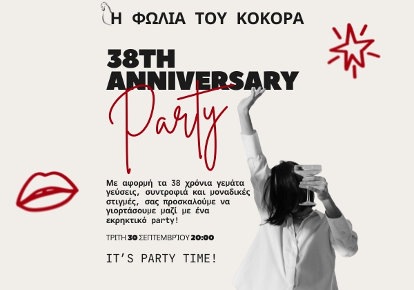 Η πρόσκληση είναι ανοιχτή: ελάτε να γιορτάσουμε μαζί τα 38 χρόνια της Φωλιάς του Κόκορα και να γράψουμε ακόμα μια ιστορία παρέας, κεφιού και χαμόγελου. Γιατί όπως λέει και το ίδιο το στέκι, οι πιο όμορφες στιγμές είναι αυτές που τις ζούμε μαζί.