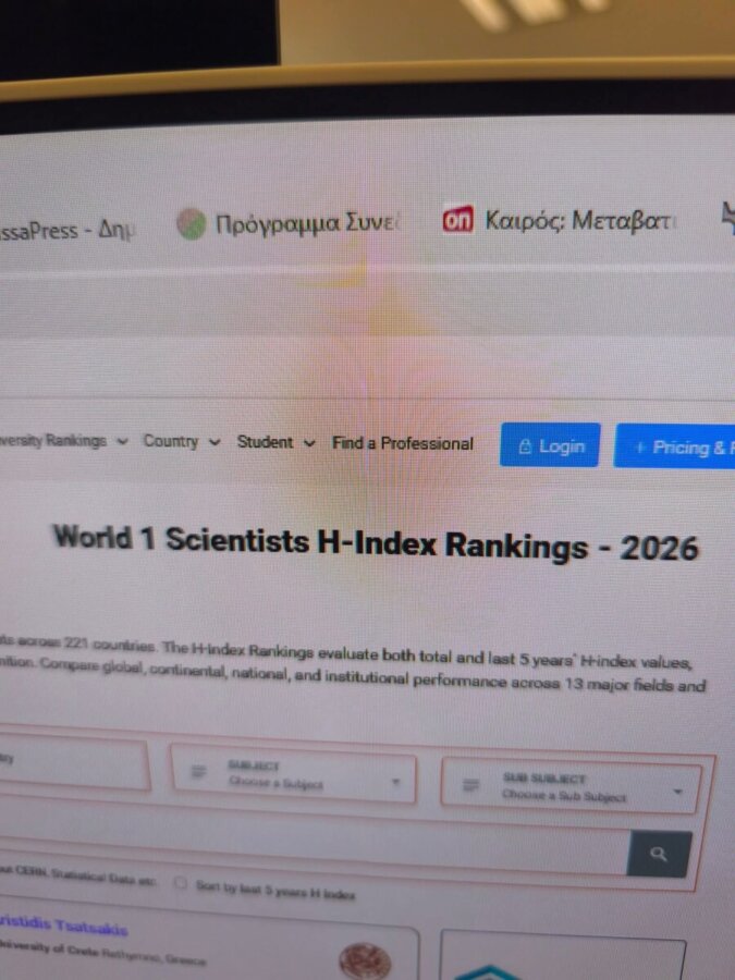 “Κυκλοφόρησαν χθες οι λίστες της κατάταξης world scientists ranking 26 ανά επιστημονικό πεδίο παγκοσμίως .