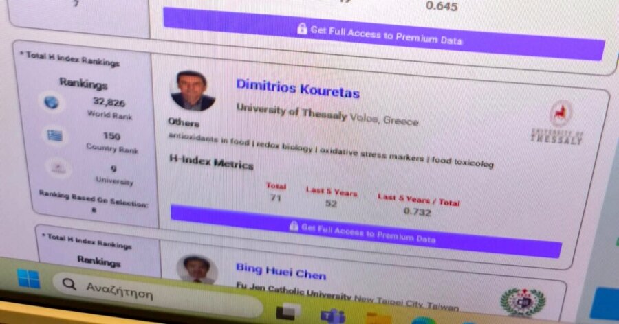 Περήφανος ο Δημήτρης Κουρέτας Περιφερειάρχης Θεσσαλίας αλλά και Καθηγητής Φυσιολογίας Zωικών Oργανισμών και Τοξικολογίας και διευθυντής του ομώνυμου εργαστηρίου, στο τμήμα Βιοχημείας-Βιοτεχνολογίας του Πανεπιστημίου Θεσσαλίας , για το εργαστήριό του που κατέκτησε την 8η θέση παγκοσμίως!