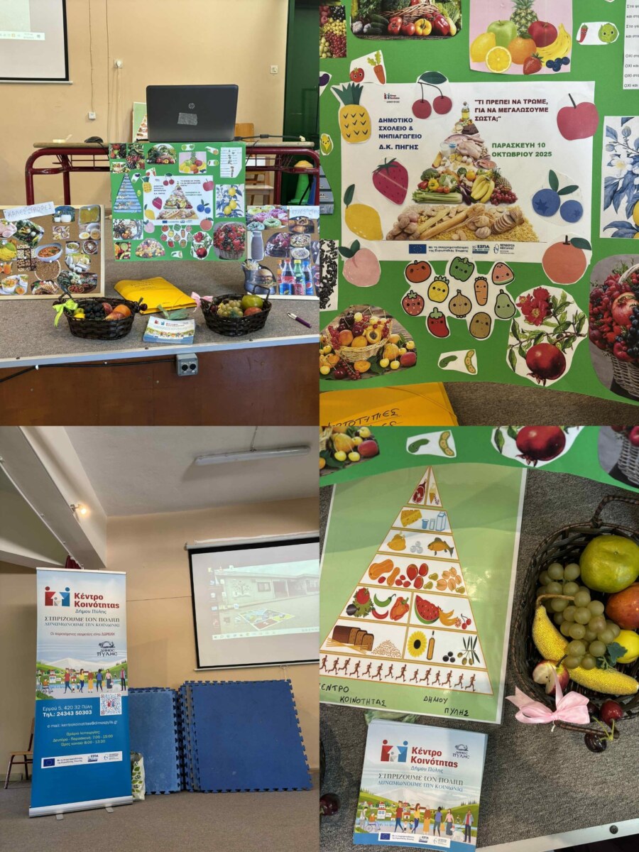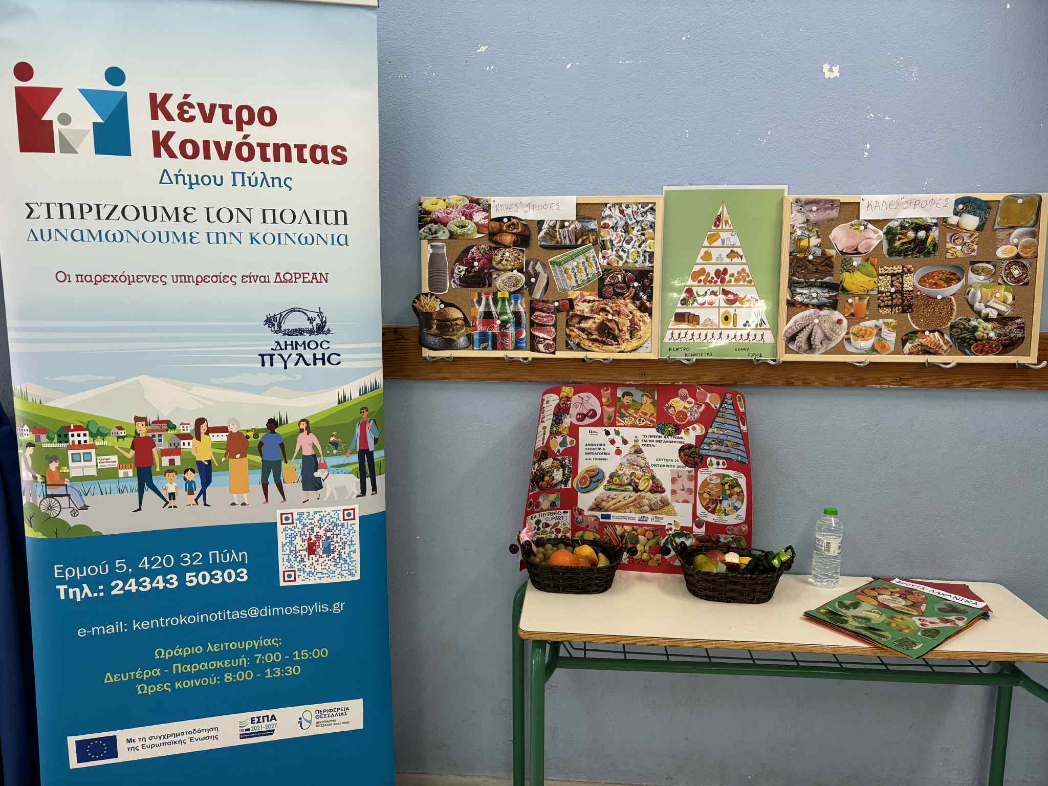 Στο πλαίσιο της διαρκούς συνεργασίας του Κέντρου Κοινότητας Δήμου Πύλης με τις σχολικές μονάδες της περιοχής, τα στελέχη συνεχίζουν με επιτυχία τον κύκλο ενημερωτικών δράσεων με επίκεντρο την υγιεινή διατροφή και τον τρόπο ζωής, απευθυνόμενο στους μαθητές των δημοτικών σχολείων και νηπιαγωγείων, υπό την στήριξη των Αντιδημαρχιών Υγείας και Παιδείας.