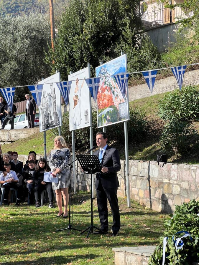 Κατά τον χαιρετισμό του, ο κ. Σκρέκας ανέφερε: «Είναι χρέος όλων μας να κρατάμε ζωντανή τη μνήμη των ηρώων μας, εμπνέοντας έτσι τις νέες γενιές με τα ιδανικά που εκείνοι υπερασπίστηκαν με τη ζωή τους.»