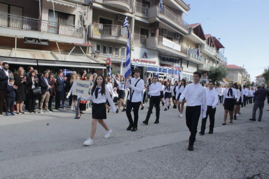 Ακολούθησε η Μεγαλειώδης παρέλαση της μαθητιώσας νεολαίας, Συλλόγων της περιοχής, του Αγήματος της ΣΜΥ καθώς και περιπολικά του Αστυνομικού Τμήματος Πύλης και οχημάτων του Πυροσβεστικού Κλιμακίου Πύλης, στον κεντρικό δρόμο της Πύλης (Αγίου Βησσαρίωνος), έμπροσθεν της εξέδρας των Επισήμων όπου προΐστατο ο Δήμαρχος Πύλης Κωνσταντίνος Μαράβας, παρουσία πλήθους κόσμου.