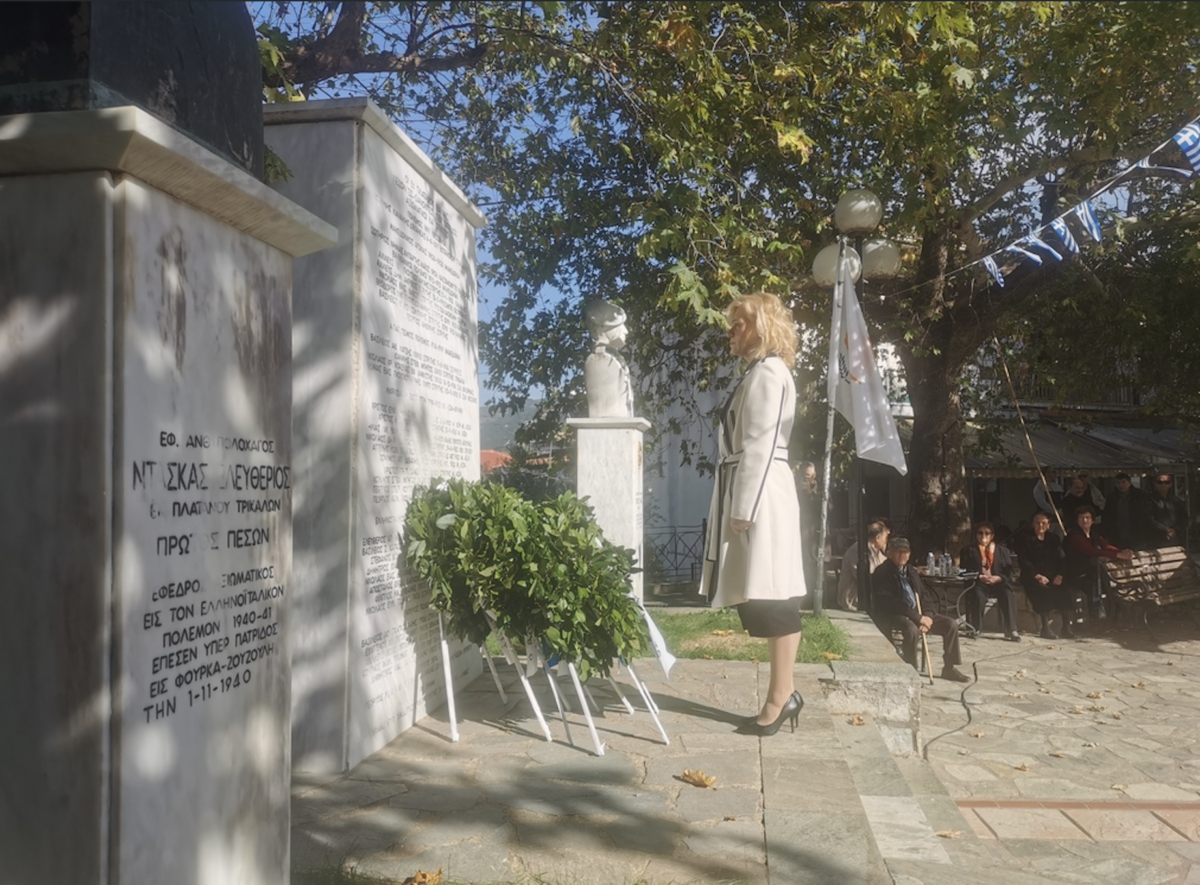 Στεφάνια κατέθεσαν, εκ μέρους της κυβέρνησης ο Υπουργός Ψηφιακής Διακυβέρνησης Δημήτρης Παπαστεργίου, οι βουλευτές Κώστας Σκρέκας και Θανάσης Λιούτας, ο αντιδήμαρχος Παιδείας, Πολιτισμού, Αθλητισμού του Δήμου Τρικκαίων Μιχάλης Λάππας εκπροσωπώντας τον Δήμο Τρικκαίων, ο εκπρόσωπος του Ανώτατου Διοικητή Φρουράς Τρικάλων, Λοχαγός Γεώργιος Λαγόπουλος, για την οικογένεια Ελευθέριου Ντάσκα (ο πρώτος έφεδρος αξιωματικός ου έπεσε στην εποποιία της Πίνδου) λόγω ασθένειας απογόνου, η αντιδήμαρχος Τομέα Α του Δήμου Τρικκαίων Ζωή Παπαναστασίου, για την οικογένεια Γεωργίου Νάκου (πεσών στην Κύπρο το 1974) ο κ. Αθανάσιος Χασιώτης, η αντιπεριφερειάρχης ΠΕ Τρικάλων Χρύσα Ντιντή, ο εκπρόσωπος της Δ/νσης Αστυνομίας Τρικάλων, αστυνομικός υποδιευθυντής κ. Γεώργιος Τσιώλης, ο εκπρόσωπος της Πυροσβεστικής Υπηρεσίας Τρικάλων, αντιπύραρχος Ιωάννης Τατσίνας, ο πρόεδρος της ΔΚ Πλατάνου Σωτήρης Καρατάσιος, ο κ. Δημήτρης Γκαραμάτσας για τον σύλλογο “Κομάντος ‘74”, ο κ. Βαγγέλης Κείος για τον ΣΥΡΙΖΑ – Προοδευτική Συμμαχία ως γραμματέας της ΝΕ Τρικάλων, για το νηπιαγωγείο Πλατάνου η διευθύντρια κ. Βασιλική Γαλατά, ο κ. Δημήτρης Γκαγκαστάθης ως πρόεδρος του Μορφωτικού Συλλόγου Απανταχού Πλατανιωτών, για τον Γυμναστικό Σύλλογο Τρικάλων ο κ. Δημήτρης Σούλας, για τον Φ.Ι.ΛΟ.Σ Τρικάλων ο γραμματέας κ. Θανάσης Παπαβασιλείου.