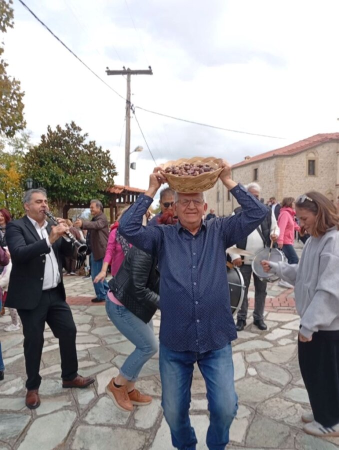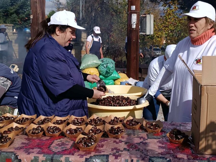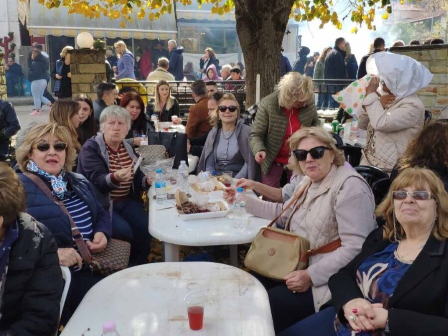 Οι συμμετέχοντες απόλαυσαν τη ζεστή φιλοξενία των κατοίκων του χωριού και γεύτηκαν ψητά και βραστά κάστανα, όλα προσφερόμενα δωρεάν, συνοδευόμενα από τοπικό κόκκινο κρασί που έρρεε άφθονο, δημιουργώντας μια γιορτινή ατμόσφαιρα.