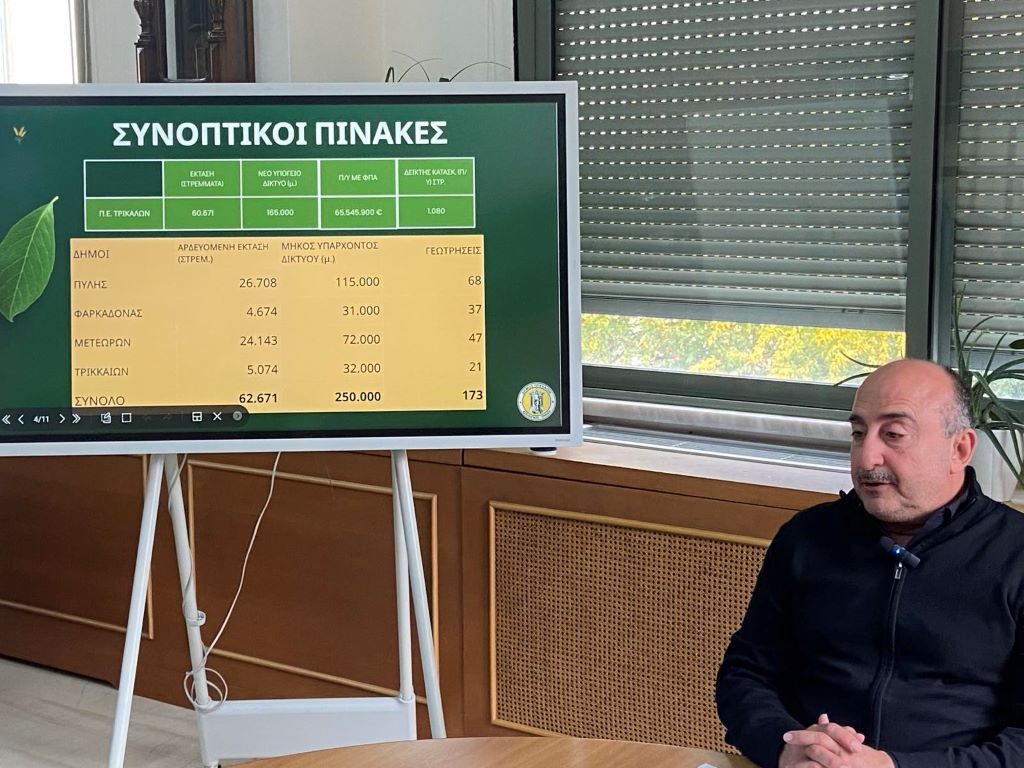 Το μεγαλύτερο έργο που έχει υλοποιήσει Δήμος στον νομό Τρικάλων, για όλον τον νομό Τρικάλων και μάλιστα για τους αγρότες και το περιβάλλον, υπέβαλε προς έγκριση ο Δήμος Τρικκαίων.