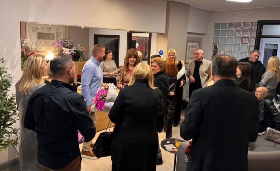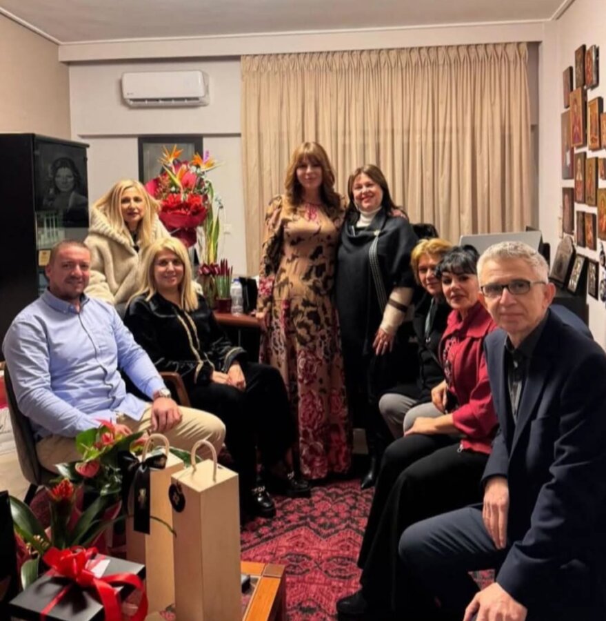 Φίλοι , συγγενείς , συνεργάτες ,ψηφοφόροι και στελέχη της ΝΔ την πλημμύρισαν με αγκαλιές ,λουλούδια και ευχές για πολιτικές επιτυχίες και οικογενειακή ευτυχία και εκείνη τους ανταπέδωσε με γλυκό κέρασμα!