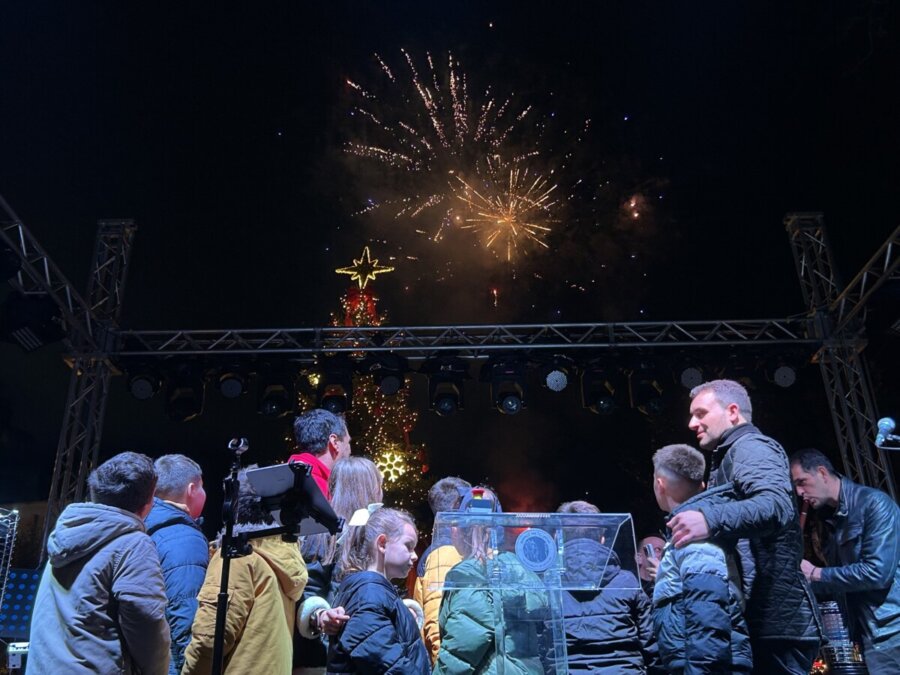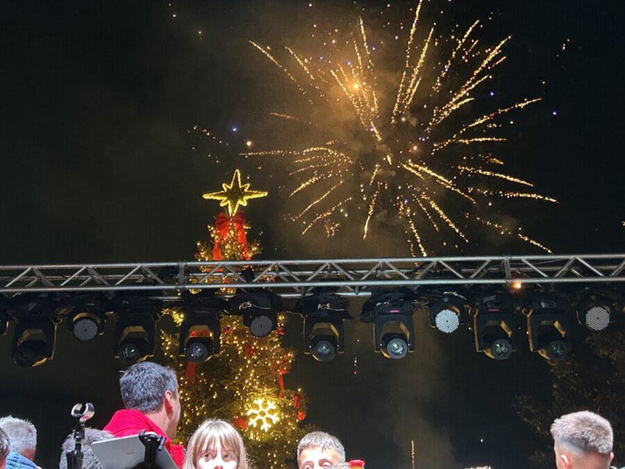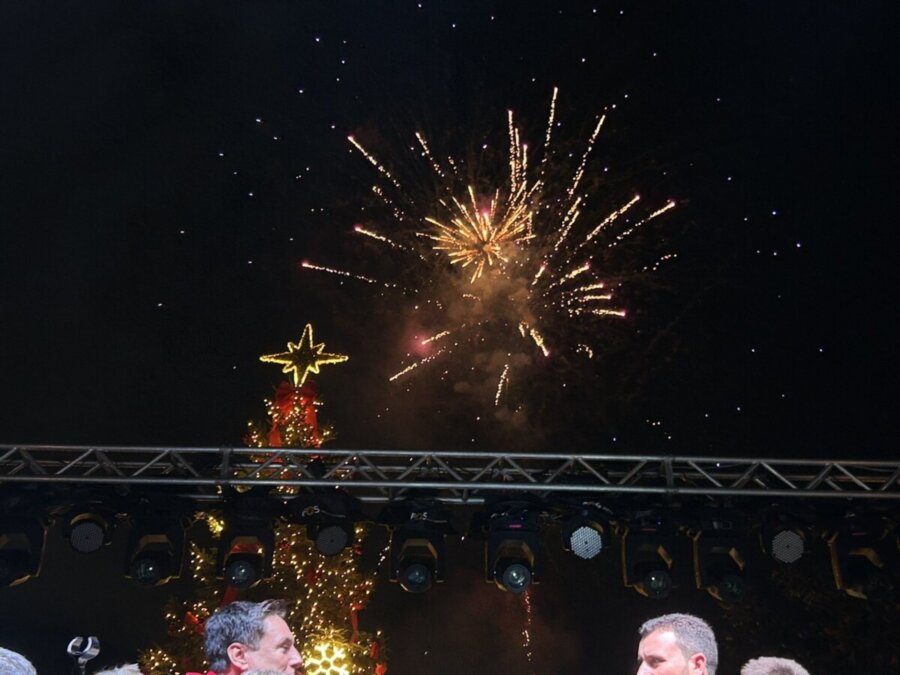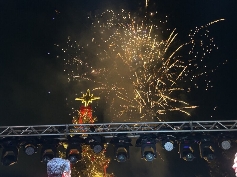 Η κορύφωση ήρθε όταν ξεκίνησε η αντίστροφη μέτρηση που συμμετείχε όλο το πλήθος, και το χριστουγεννιάτικο δέντρο φωταγωγήθηκε, χιλιάδες λαμπιόνια άναψαν και ο ουρανός πλημμύρισε από πυροτεχνήματα.