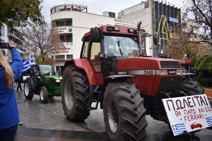 Λίγο πριν τη δίκη μια ντουζίνα τρακτέρ ξεσηκώνοντας με κορναρίσματα το κέντρο, κατέφτασαν στην Κεντρική πλατεία από το μπλόκο της Νίκαιας για συμπαράσταση των αγροτών στους συναδέλφους τους ζητώντας την αθώωσή τους.