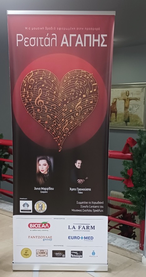 Στην κατάμεστη από κόσμο αίθουσα εκδηλώσεων του Πνευματικού Κέντρου του Δήμου Τρικκαίων,η Αντικαρκινική Εταιρεία Παράρτημα Τρικάλων, σε συνεργασία με τον Δήμο Τρικκαίων, διοργάνωσε το βράδυ της Πέμπτης μια ξεχωριστή φιλανθρωπική βραδιά με τίτλο «Ρεσιτάλ Αγάπης».