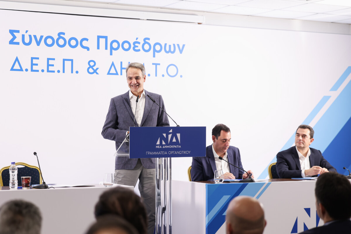 Στην τοποθέτησή του ανέδειξε τον καταλυτικό ρόλο των οργανώσεων της Νέας Δημοκρατίας Δ.Ε.Ε.Π. και ΔΗΜ.Τ.Ο., τονίζοντας ότι συνιστούν τη ζωντανή βάση και τη ραχοκοκαλιά της παράταξης, δηλαδή την οργανωμένη παρουσία «στη γειτονιά, στον επαγγελματικό χώρο, στην κοινωνία», ενώ επισήμανε ότι οι νεοεκλεγέντες Πρόεδροι αποτελούν τον σταθερό σύνδεσμο του κόμματος με τις τοπικές κοινωνίες, μεταφέροντας στο κέντρο ανάγκες, προτάσεις και εφαρμόσιμες λύσεις.