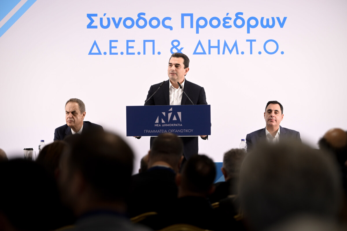 Στην τοποθέτησή του ανέδειξε τον καταλυτικό ρόλο των οργανώσεων της Νέας Δημοκρατίας Δ.Ε.Ε.Π. και ΔΗΜ.Τ.Ο., τονίζοντας ότι συνιστούν τη ζωντανή βάση και τη ραχοκοκαλιά της παράταξης, δηλαδή την οργανωμένη παρουσία «στη γειτονιά, στον επαγγελματικό χώρο, στην κοινωνία», ενώ επισήμανε ότι οι νεοεκλεγέντες Πρόεδροι αποτελούν τον σταθερό σύνδεσμο του κόμματος με τις τοπικές κοινωνίες, μεταφέροντας στο κέντρο ανάγκες, προτάσεις και εφαρμόσιμες λύσεις.