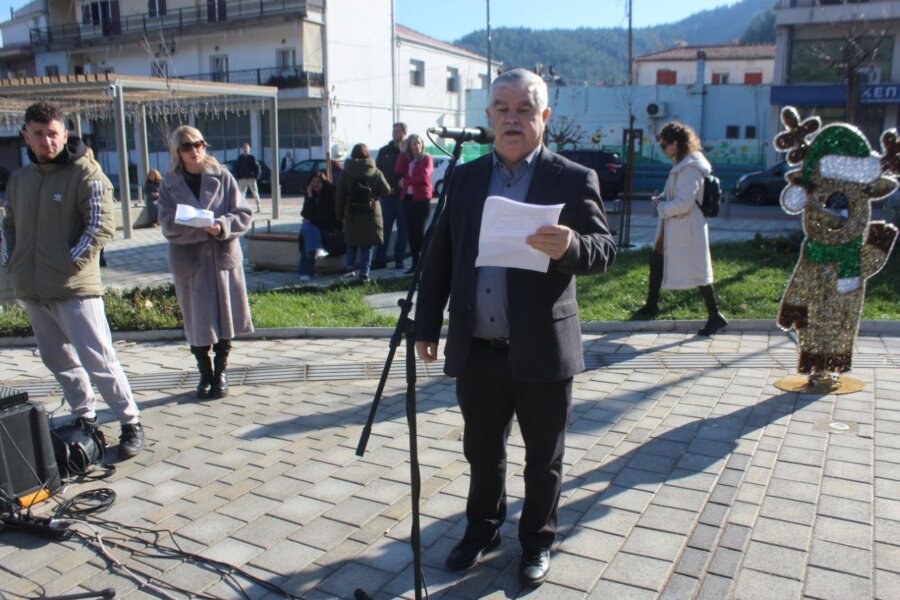 “Αξιότιμε κ. Διευθυντά της Πρωτοβάθμιας Εκπαίδευσης κ. Τρικάλη, αγαπητά παιδιά των Δημοτικών Σχολείων του Δήμου Πύλης, αγαπητοί εκπαιδευτικοί γονείς και συμπολίτες. Με ιδιαίτερη χαρά σας μεταφέρω του θερμούς χαιρετισμούς του Δημάρχου Πύλης ο οποίος λόγω ανειλημμένων υποχρεώσεων απουσιάζει καθώς και τις ευχές του για καλή επιτυχία στην σημερινή Χριστουγεννιάτικη εκδήλωση με τον ξεχωριστό φιλανθρωπικό της χαρακτήρα. Η σημερινή παρουσία και συμμετοχή όλων των παιδιών των Δημοτικών Σχολείων του Δήμου μας γεμίζει την πλατεία με χαμόγελα, ελπίδα και το αληθινό νόημα των Χριστουγέννων, την αγάπη, την προσφορά και την αλληλεγγύη. Αξίζουν θερμά συγχαρητήρια στην Διεύθυνση Πρωτοβάθμιας Εκπαίδευσης, στην Ιερά Μητρόπολη Τρίκκης ,Γαρδικίου και Πύλης, καθώς και σε όλους συνέβαλαν στην διοργάνωση αυτής της όμορφης γιορτής. Εύχομαι καλά Χριστούγεννα με υγεία, χαρά και αισιοδοξία.”
