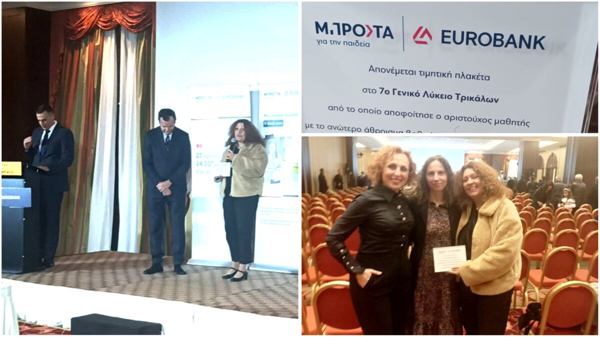 Χθες, το βράδυ, στο Imperial Ηotel στη Λάρισα, στην εκδήλωση της Εurobank “Μπροστά για την παιδεία”, νιώσαμε υπερήφανοι για το μαθητή μας Χρήστο Κατσιαμάνη, τον πρώτο των πρώτων στο νομό Τρικάλων στις Πανελλήνιες του 2025 και, φυσικά, νιώσαμε υπερήφανοι για το σχολείο μας, το 7ο Γενικό Λύκειο Τρικάλων στο οποίο, χάρη στην πρωτιά, στο νομό Τρικάλων, του αγαπημένου μαθητή μας, Χρήστου Κατσιαμάνη, απονεμήθηκε τιμητική πλακέτα ως το σχολείο “από το οποίο αποφοίτησε ο αριστούχος μαθητής με το ανώτερο άθροισμα βαθμών στις Πανελλαδικές εξετάσεις στην Περιφερειακή Ενότητα Τρικάλων για τη σχολική περίοδο 2024-2025”.