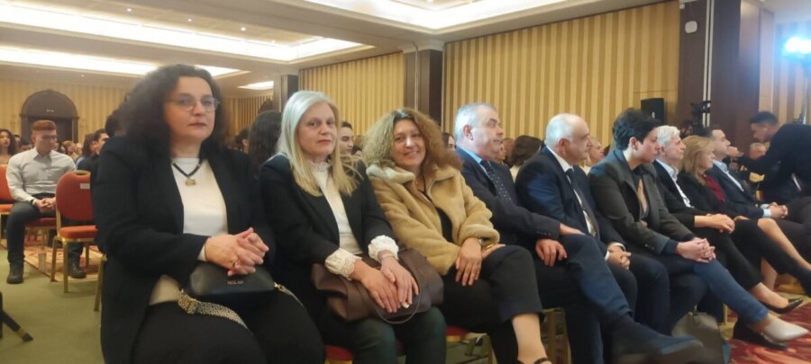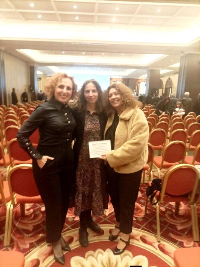 Εκ μέρους του 7ου Λυκείου Τρικάλων την τιμητική πλακέτα παρέλαβε η Διευθύντρια του σχολείου, Αθανασία Τσιοτινού, η οποία παρέστη στην εκδήλωση μαζί με την Υποδιευθύντρια του σχολείου, Αριστέα Καραμήτρου.