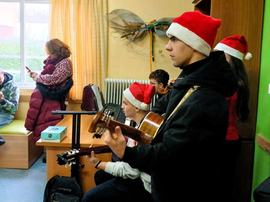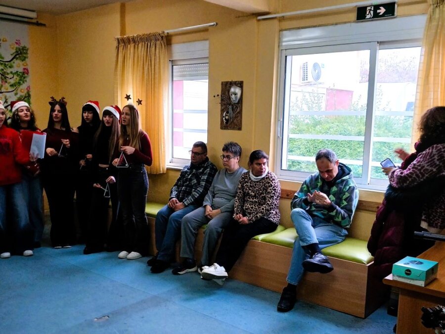 Εν όψει των γιορτών και με πνεύμα χριστουγεννιάτικο, μαθητές και μαθήτριες του 7ου ΓΕΛ Τρικάλων με χορωδία και όργανα, με τη συνοδεία της διευθύντριας του σχολείου κ. Αθανασίας Τσιοτινού και της διευθύντριας κ. Αριστέας Καραμήτρου επισκέφθηκαν το ΚΔΑΠ (α΄ βάρδια) τη Δευτέρα 22 Δεκεμβρίου 2025.