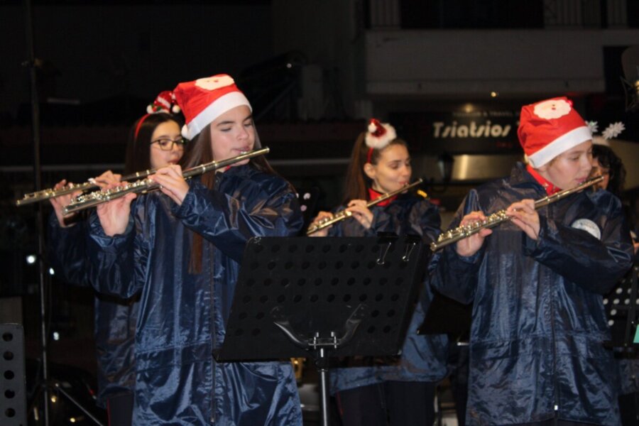Οι μουσικοί της Φιλαρμονικής, με το γνωστό υψηλό καλλιτεχνικό τους επίπεδο και αφοσίωση, παρουσίασαν ένα πλούσιο πρόγραμμα. Το μουσικό ταξίδι περιλάμβανε κλασικές χριστουγεννιάτικες μελωδίες που μετέφεραν το πνεύμα των ημερών, αγαπημένα εορταστικά τραγούδια και ειδικές συνθέσεις που δημιούργησαν μια ζεστή και συγκινητική ατμόσφαιρα στην καρδιά της πόλης.