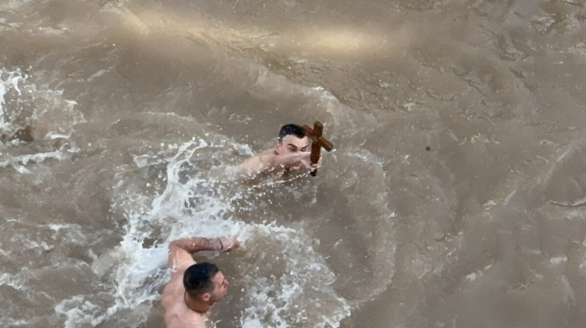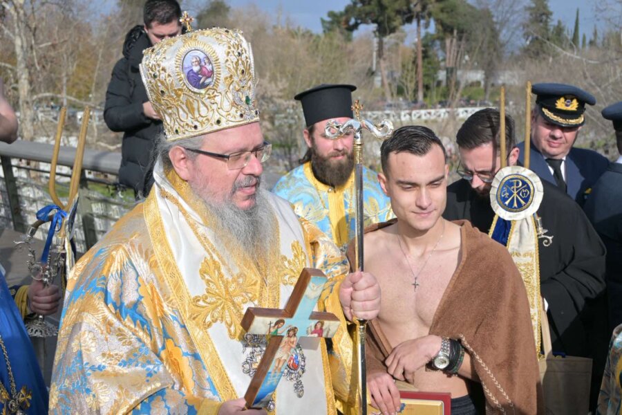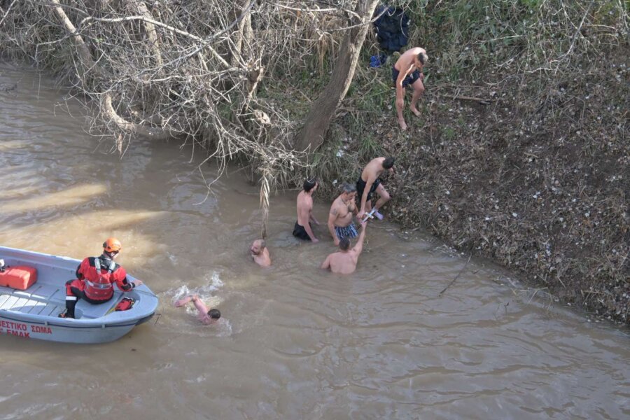 Στα νερά του Πηνειού στη Λάρισα βούτηξαν για να πιάσουν τον Τίμιο Σταυρό επτά πιστοί.