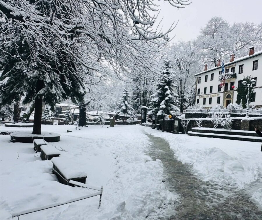 Σήμερα μπορείτε να απολαύσετε το χιονισμένο Μέτσοβο μέσα από τις μαγευτικές εικόνες που ακολουθούν.