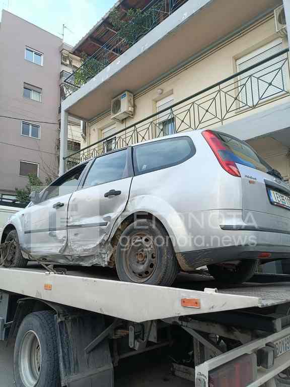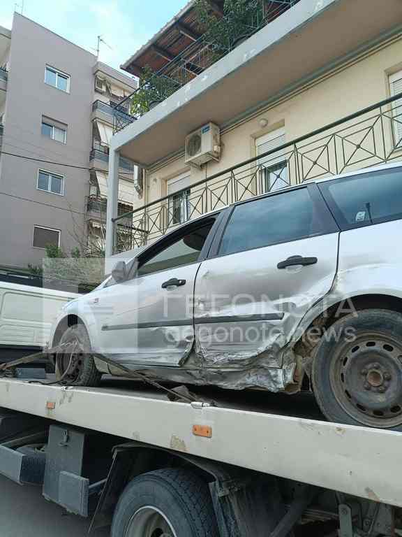 Δυο αυτοκίνητα συγκρούστηκαν πλαγιομετωπικά με αποτέλεσμα το ένα εξ’ αυτών να “καβαλήσει” την νησίδα και να καρφωθεί σε κολώνα φωτισμού.