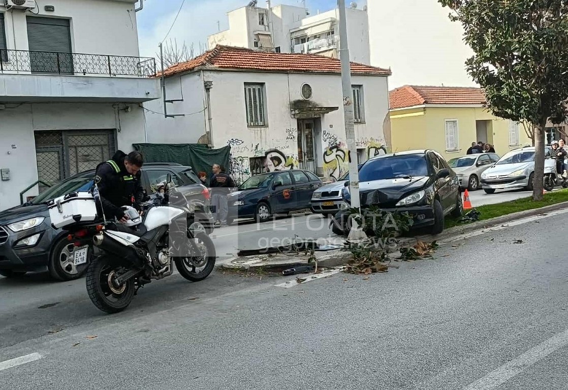 Δυο αυτοκίνητα συγκρούστηκαν πλαγιομετωπικά με αποτέλεσμα το ένα εξ’ αυτών να “καβαλήσει” την νησίδα και να καρφωθεί σε κολώνα φωτισμού.