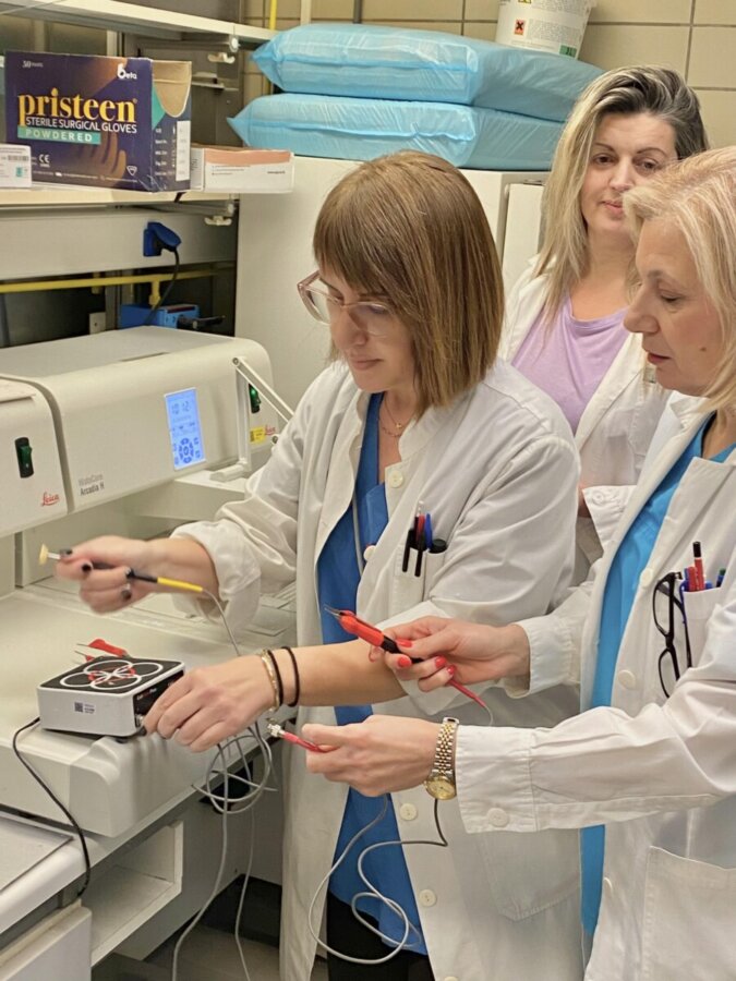Εκ μέρους του Νοσοκομείου, η Διευθύντρια του Παθολογοανατομικού Τμήματος, Παθολογοανατόμος κα Μαρία Μούσια, παρέλαβε τον νέο εξοπλισμό λαβίδων για την εμπέδωση των ιστολογικών δειγμάτων. Πρόκειται για εξοπλισμό που διευκολύνει σημαντικά το έργο των τεχνολόγων του τμήματος, επιταχύνοντας τη διαδικασία λήψης και επεξεργασίας των δειγμάτων. Η κα Μούσια εξέφρασε θερμές ευχαριστίες και την ευγνωμοσύνη της προς την ΟΜΗΡΟΣ, επισημαίνοντας τη σημασία της πρωτοβουλίας αυτής για την αποτελεσματικότερη εξυπηρέτηση των αναγκών των ασθενών.