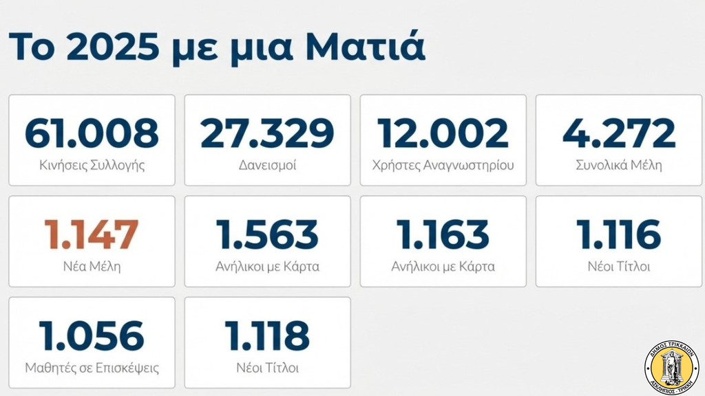 2. Ο συνολικός αριθμός των εγγεγραμμένων μελών της Βιβλιοθήκης ανέρχεται σε 4.272. Οι νέες εγγραφές μελών για το 2025 έφτασαν τις 1.147.