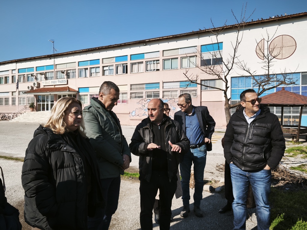 Η επίσκεψη συμπεριέλαβε τον αύλειο χώρου του σχολικού συγκροτήματος 1ου Γυμνασίου – 1ου Λυκείου Τρικάλων, παρούσης της διευθύντριας του δεύτερου σχολείου κ. Δήμητρας Αγγέλου.