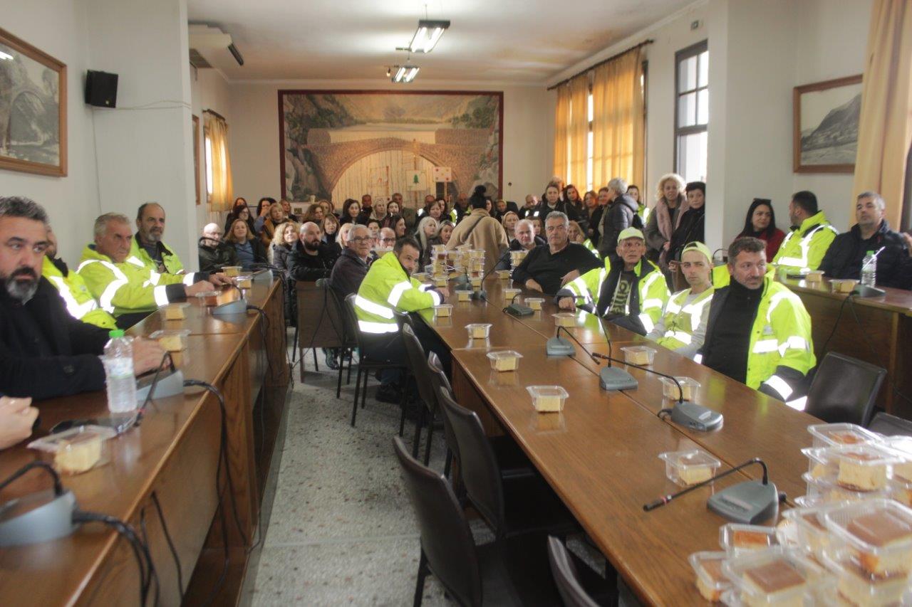 Αγαπητές και αγαπητοί συνάδελφοι, σας ευχαριστώ θερμά για την παρουσία σας στην σημερινή κοπή της πρωτοχρονιάτικης πίτας του Δήμου μας.