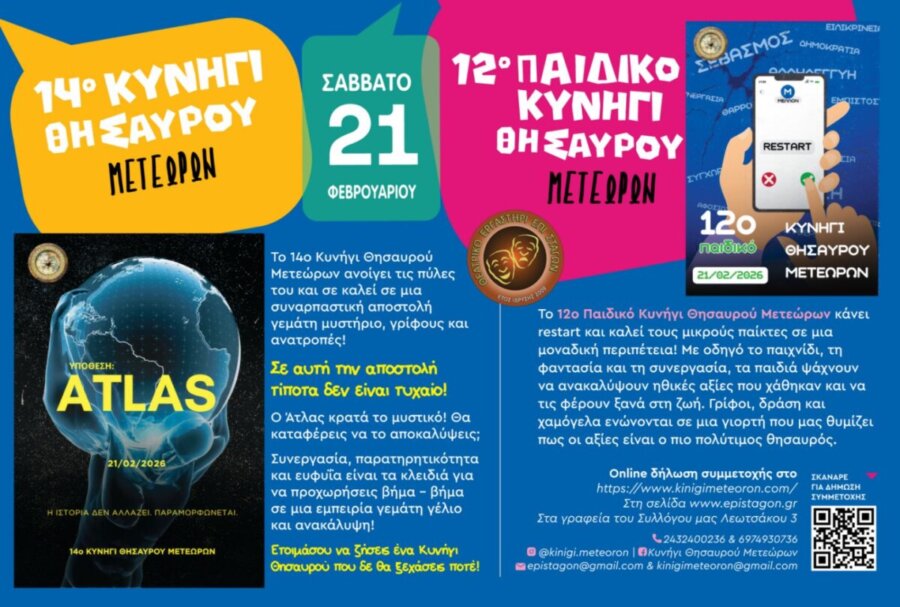 Σάββατο 21 Φεβρουαρίου: Κυνήγι Θησαυρού Μετεώρων – Θέμα: «ΑΤΛΑΣ»