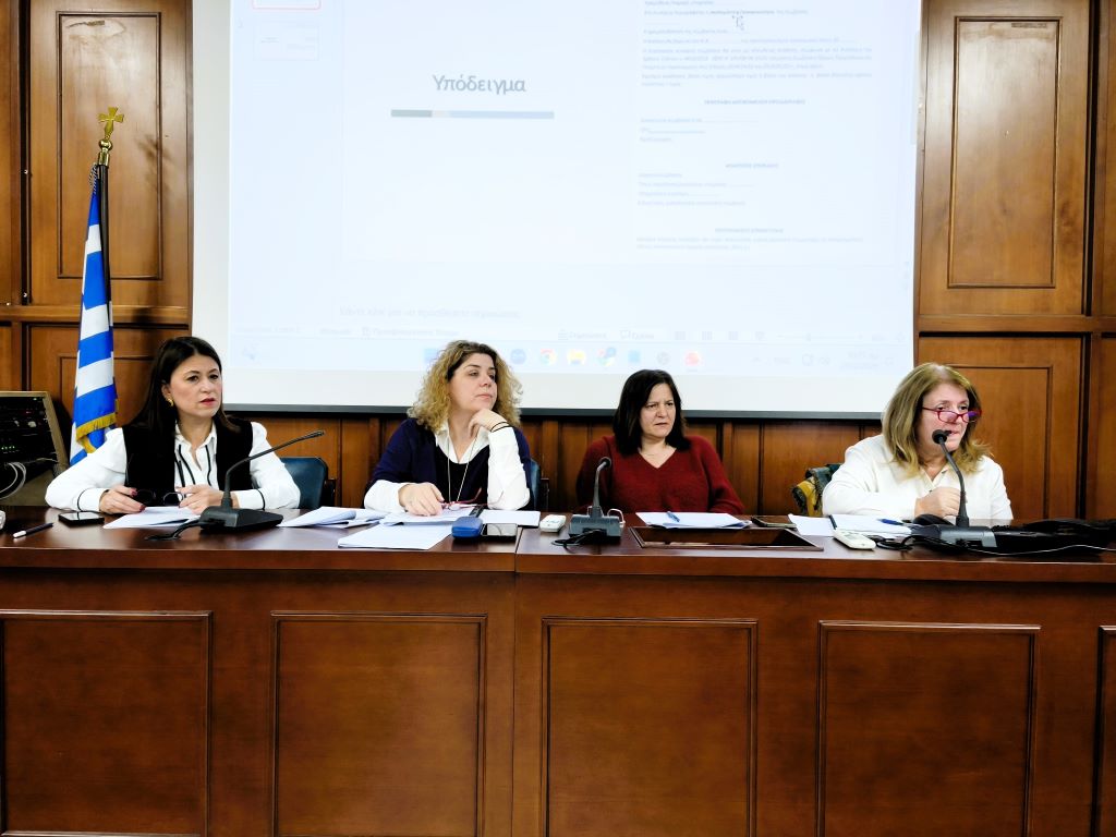 Οι κ. Φωτεινή Κρύου (προϊσταμένη τμήματος Προμηθειών) και Παναγιώτα Ευθυμίου (προϊσταμένη στο Αυτοτελές Τμήμα Εσωτερικού Ελέγχου) και Μαρία Μουργελά (τμήμα προμηθειών) εξήγησαν συγκεκριμένες διαδικασίες και απάντησαν σε ρωτήσεις που τέθηκαν από στελέχη της Δ/νσης Κοινωνικής Μέριμνας με επικεφαλής τη διευθύντρια κ. Στ. Πελίγκου.