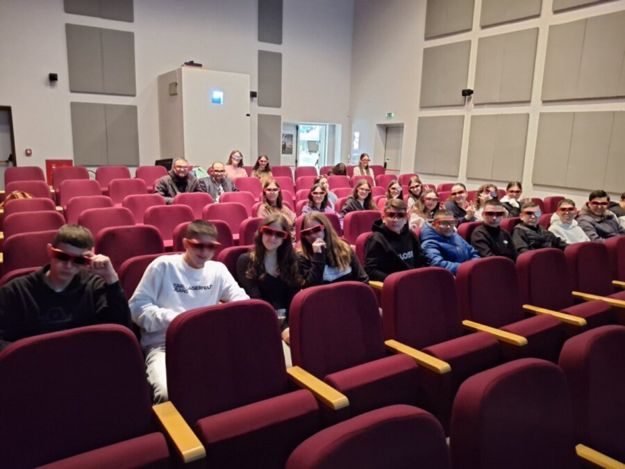 ‘Έπειτα στο Κέντρο Ψηφιακής Προβολής Ιστορίας και Πολιτισμού στην Καλαμπάκα παρακολούθησαν με ειδικά 3D γυαλιά μικρές εκπαιδευτικές προβολές με θέμα τη Μυθολογία, την Γεωλογία των βράχων των Μετεώρων και την Ιστορία των Ιερών Μονών.