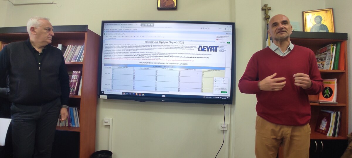 - Περιβαλλοντική ευαισθητοποίηση: Ο Διευθυντής της ΔΕΥΑΤ, κ. Χάρης Καλλιάρας, παρουσίασε το πρόγραμμα δράσεων που θα υλοποιηθούν στα Δημοτικά Σχολεία του Δήμου Τρικκαίων με αφορμή την Παγκόσμια Ημέρα Νερού (22 Μαρτίου 2026). Οι μαθητές θα συμμετέχουν σε βιωματικά παιχνίδια και διαδραστικές παρουσιάσεις, με στόχο την καλλιέργεια της υπεύθυνης χρήσης του νερού στην καθημερινότητα.