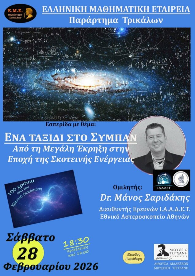 Το απόγευμα του Σαββάτου 28 Φεβρουαρίου στο κατάμεστο από κόσμο Μουσείο Τσιτσάνη ,το Παράρτημα Τρικάλων της Ελληνικής Μαθηματικής Εταιρείας διοργάνωσε επιστημονική εκδήλωση με θέμα: