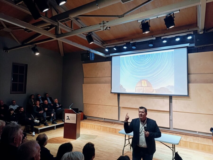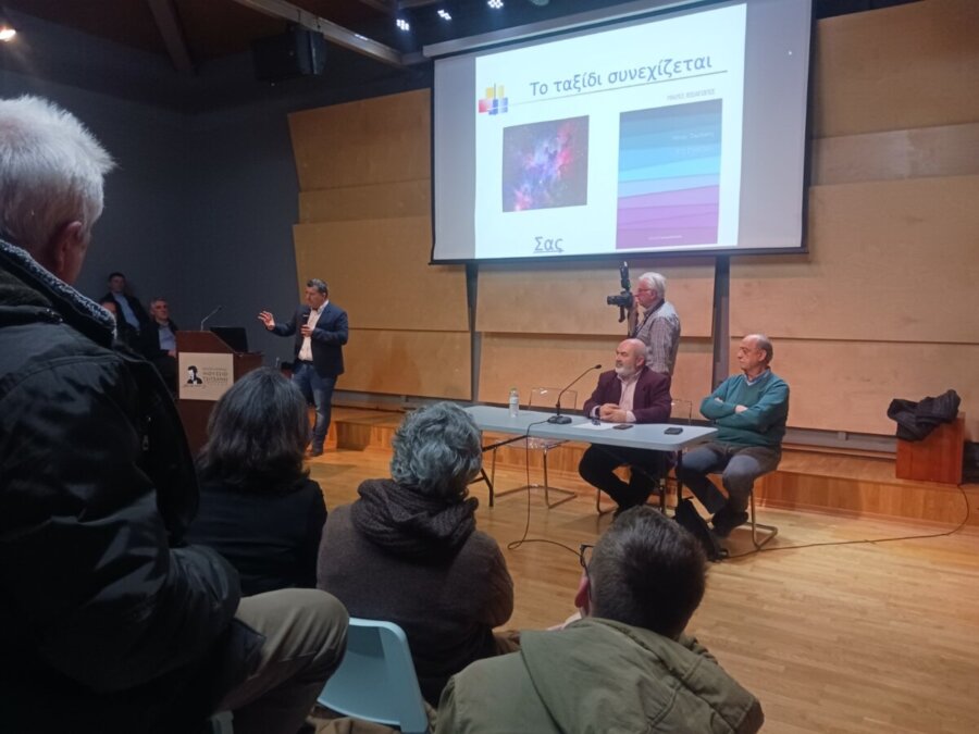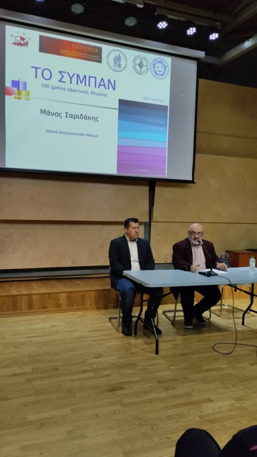 Ομιλητής ήταν ο Dr. Μάνος Σαριδάκης, Διευθυντής Ερευνών στο Ινστιτούτο Αστρονομίας, Αστροφυσικής, Διαστημικών Εφαρμογών και Τηλεπισκόπησης (Ι.Α.Α.Δ.Ε.Τ.) του Εθνικού Αστεροσκοπείου Αθηνών.