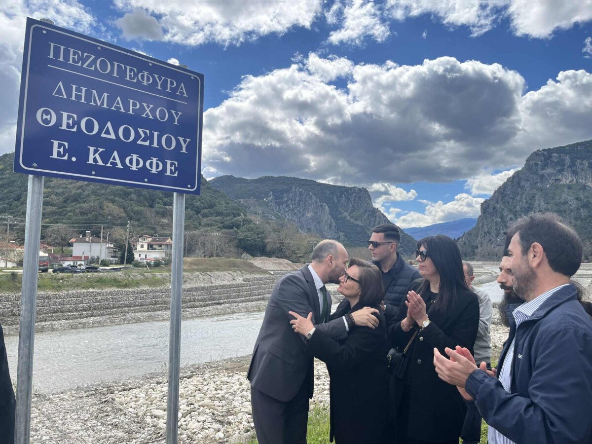 Με πλήθος κόσμου και σε κλίμα συγκίνησης πραγματοποιήθηκε την Κυριακή 29 Μαρτίου, η εκδήλωση για την ονοματοδοσία της Πεζογέφυρας “Θεοδοσίου Ε. Καφφέ” στο Μουζάκι, με συντονίστρια την κ.Φανή Δασκάλου, Πρόεδρο Δημοτικού Συμβουλίου.
