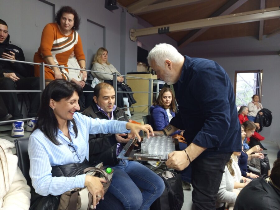 Ο συγγραφέας καλοσώρισε τους παρευρισκόμενους, όπως το συνηθίζει, κερνώντας τους κρητικό ρακί , έτσι για να παει καλά η βραδιά!