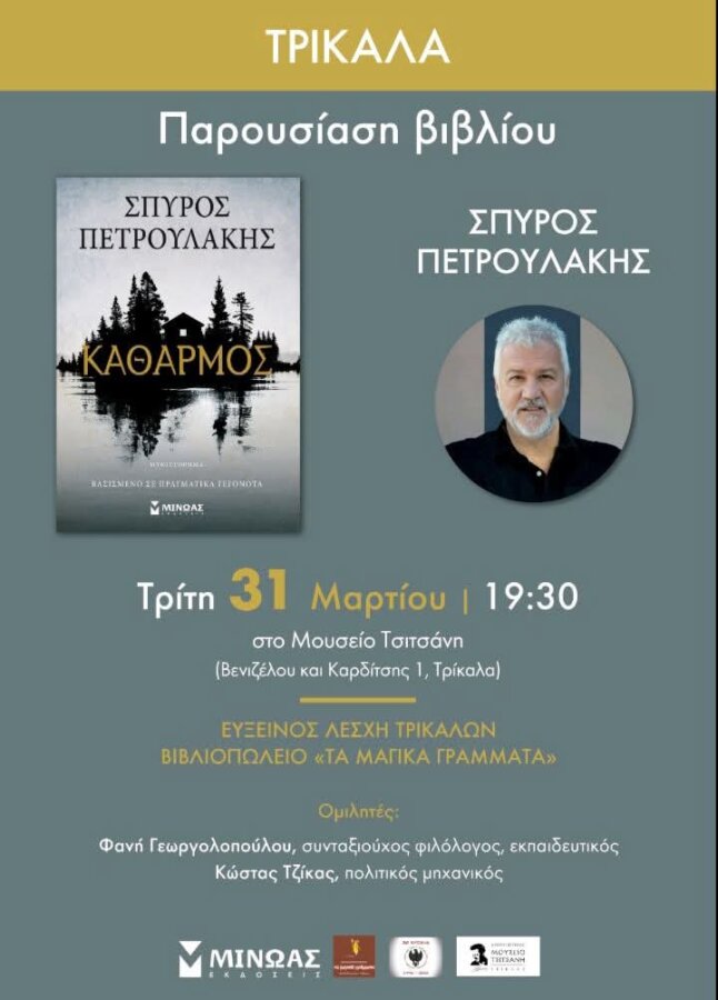 Στην κατάμεστη από κόσμο αίθουσα του Μουσείου Τσιτσάνη σήμερα Τρίτη 31 Μαρτίου στις 19:30, ο γνωστός και ιδιαίτερα αγαπητός συγγραφέας Σπύρος Πετρουλάκης παρουσίασε το νέο του βιβλίο με τίτλο “Καθαρμός”.