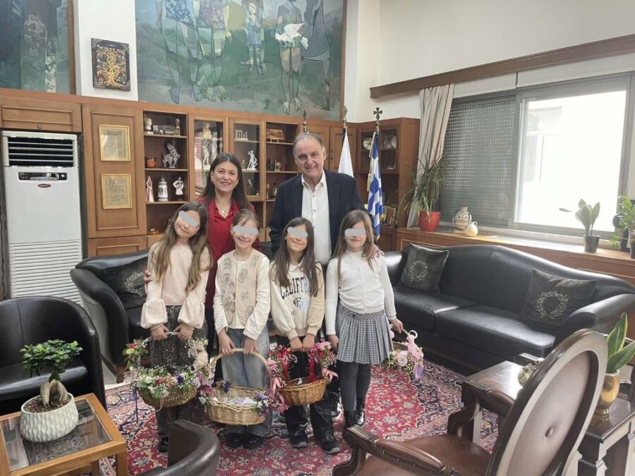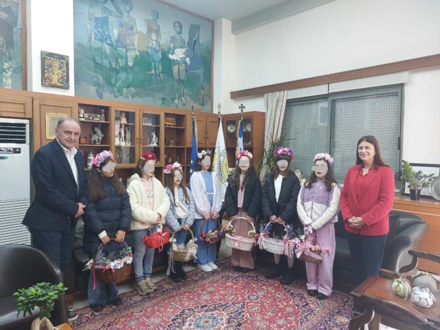 Κοριτσίστικες φωνές, όμορφα καλαθάκια και κάλαντα του Λαζάρου το πρωί της Πέμπτης 2 Απριλίου 2026 στο Δημαρχείο Τρικκαίων.