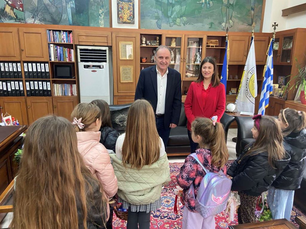 Νήπια (από το 3ο και το 7ο Νηπιαγωγεία) και κορίτσια τάξεων Δημοτικού Σχολείου έψαλαν τα κάλαντα στον δημαρχεύοντα Τάκη Παζαΐτη και στην αντιδήμαρχο Σοφία Αλεστά.