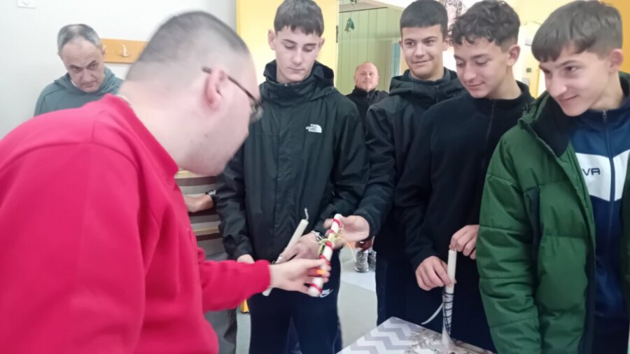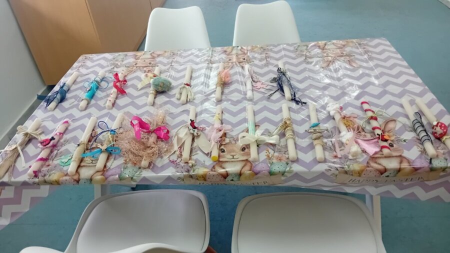 Την Πέμπτη 2 Απριλίου 2026 φιλοξενούμενοι/ες και προσωπικό του ΚΔΑΠ υποδέχθηκαν μαθητές και μαθήτριες από το τμήμα Γ3 του (παρακείμενου) 1ου Γυμνασίου Τρικάλων, που με τη σειρά τους, με χαρά κατασκεύασαν και προσέφεραν όμορφες λαμπάδες.