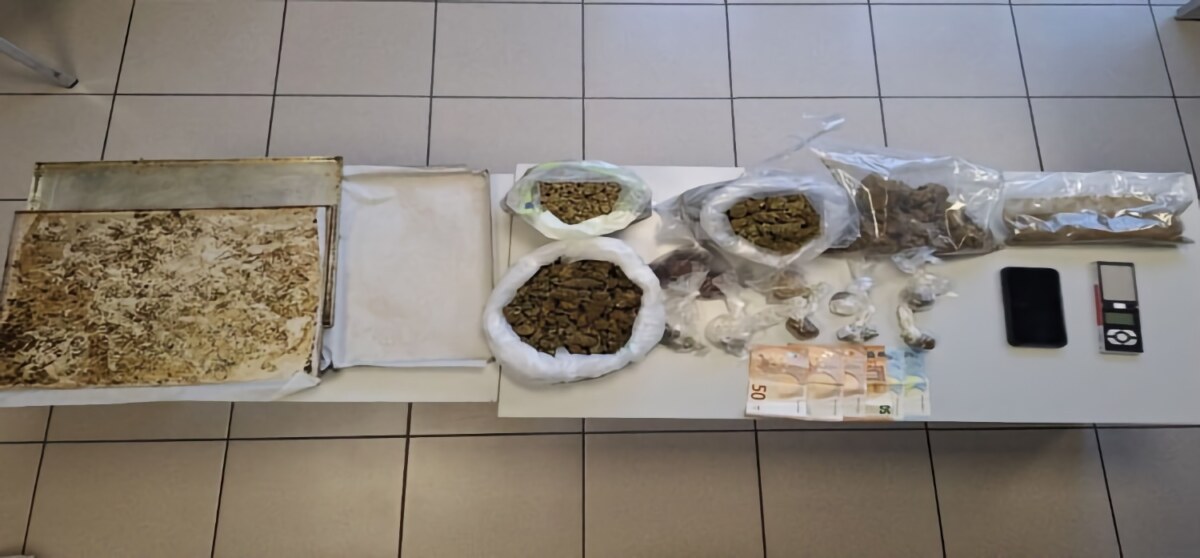 Σε διαφορετικά σημεία της οικίας εντοπίστηκαν και κατασχέθηκαν 757,6 γραμμάρια κατεργασμένης κάνναβης τύπου «σοκολάτα», 858,7 γραμμάρια ακατέργαστης κάνναβης, καθώς και τρία μπισκότα κάνναβης συνολικού βάρους 75,4 γραμμαρίων.