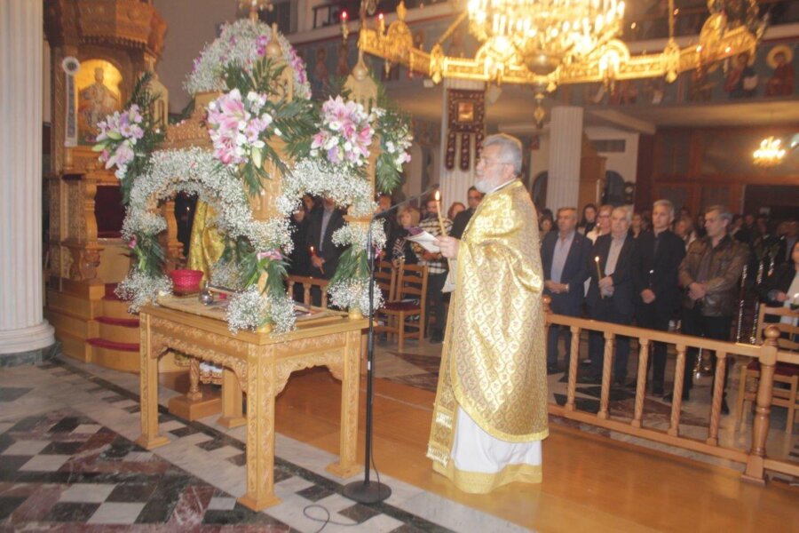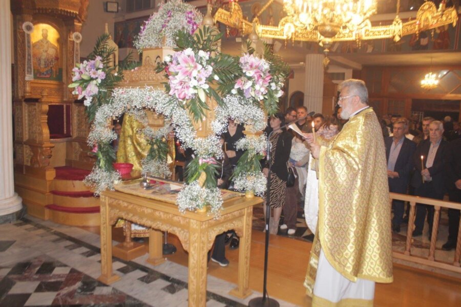 Η ατμόσφαιρα στον Ομώνυμο Ιερό Ναό της Κωμόπολης ήταν ιδιαίτερα συγκινητική από νωρίς το βράδυ, καθώς Εψάλησαν τα Εγκώμια της Μεγάλης Παρασκευής. Οι πιστοί προσήλθαν για να προσκυνήσουν τον ανθοστόλιστο Επιτάφιο, βιώνοντας το πένθος της μέρας μέσα από τους βυζαντινούς ύμνους.