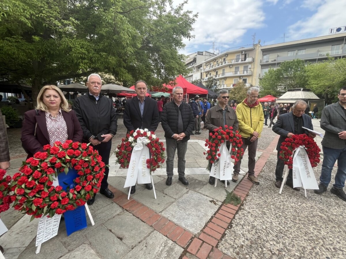 Στις 18 Απριλίου 1944 οι Γερμανοί κατακτητές απαγχονίζουν τον 29χρονο Γιάννη Μπριάζη, τον 27χρονο Κώστα Στεργιόπουλο, τον 24χρονο Στέργιο Γάτσα, τον 22χρονο Απόστολο Τσανάκα και τον 22χρονο Κώστα Σύρμπα στην πλατεία Ρήγα Φεραίου. Στην ίδια πλατεία το 2026 συγκεντρώθηκαν οι εκπρόσωποι των φορέων για την απόδοση φόρου τιμής, με σύντομη ομιλία από την Αργυρώ Βράκα, πρόεδρο του Δημοτικού Συμβουλίου Νέων του Δήμου Τρικκαίων.
