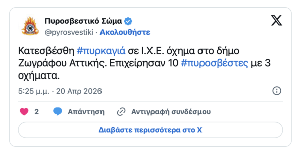 Στο σημείο έσπευσαν 10 πυροσβέστες με 3 οχήματα και έσβησαν τη φωτιά. Όπως διαπιστώθηκε το όχημα ανήκε στον καθηγητή του ΕΜΠ Δημήτρη Καρώνη ο οποίος είναι γνωστός για την υπόθεση των Τεμπών.