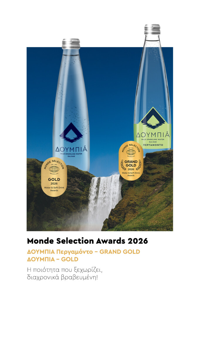 Σημαντικές διακρίσεις σε διεθνές επίπεδο απέσπασε το ανθρακούχο φυσικό μεταλλικό νερό ΔΟΥΜΠΙΑ στον καταξιωμένο διεθνή διαγωνισμό Monde Selection 2026, επιβεβαιώνοντας την ποιότητα και την ξεχωριστή ταυτότητα των προϊόντων της.